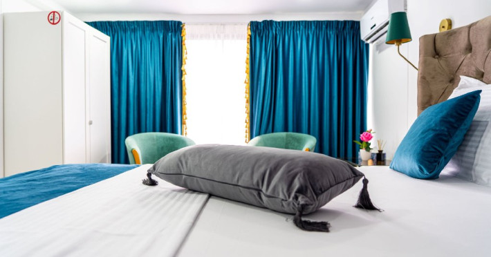 Camerele sunt dotate cu baie proprie, tv, frigider, pat matrimonial si aer conditionat.