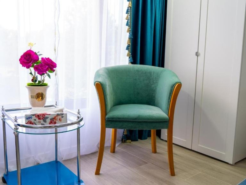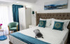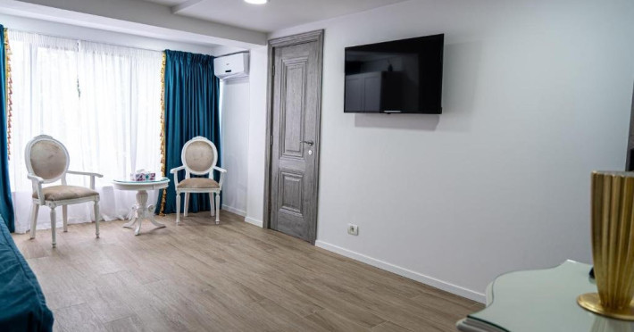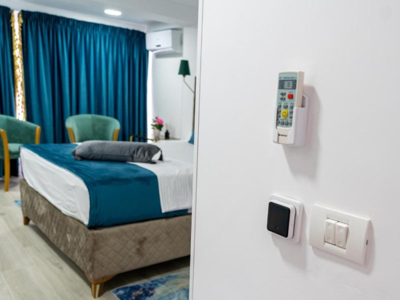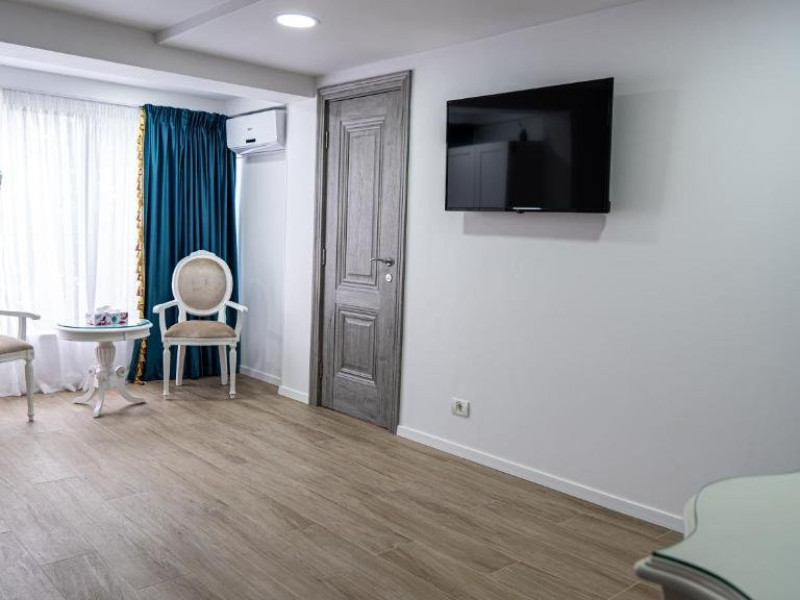 Papuci, kettle, apa plata, telefon, Smart Tv, WiFi, cada/dus, cosmetice premium, uscator de par, baie proprie, zona de relaxare(masa cu scaune), pantofar, cuier, vanity kit, set ac ata, AC.