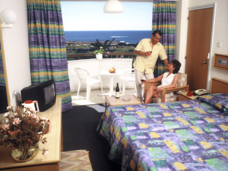 Hotelul a fost complet renovat și extins în 2003. Camerele sunt dotate cu baie proprie , duș, aer condiționat, telefon, radio, tv, minibar, uscător de păr, balcon, baby cots, mini frigider. Camerele de tip familii cu vedere la mare și studiourile familiale sunt perfecte pentru 6 persoane.