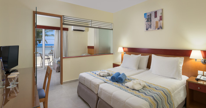 Next to the endless shore of Ialyssos and its refreshing breeze, 6 km away from the airport and 7 km from the port of Rodes, amidst green palm trees and elegant water fountains in the area of Ixia, you will find the Avra Beach Resort Hotel & Bungalows that is capable of offering you an exciting stay experience on the island of Rhodes. The renovated 4 star hotel complex is built on one of the island’s most cosmopolitan locations and offers superior hospitality services and modern facilities that will satisfy your every need.Avra Beach Resort Hotel & Bungalows resembles an oasis just a breath away from the beach, and only 6 km from the town of Rhodes. Whether contemplating a romantic escape, or a family holiday on the cosmopolitan island of Rhodes, you are sure to think of Avra Beach Resort Hotel & Bungalows, since the idyllic environment and the all-inclusive services it provides make it the perfect retreat for a wonderful vacation that every type of traveler will fully enjoy. The well appointed rooms combine aesthetics with functionality while the comfortable facilities guarantee an unforgettable stay on the island of Knights, filled with moments of excitement and wellbeing in addition to a plethora of experience enhancing activities.Relax by the pool, enjoy the energising effect of the jacuzzi, try some watersports action as well as other summer activities, or simply gaze into the deep blue of the Aegean from the beach bar’s verandah or from your own balcony, and you will be convinced that you are truly in a wondrous place.Your stay at Avra Beach Resort Hotel & Bungalows will provide the ultimate all-inclusive holiday experience on Rhodes island, and be the setting of a thrilling adventure that you will most certainly not soon forget.Located right on Ialysos Beach of Ixia, Avra Beach is an all-inclusive 4-star hotel. Set amidst palm-tree gardens with fountains, it offers a free-form pool and hot tub. Tennis and beach volleyball courts are provided.All rooms of Avra Beach Resort open to a private patio or balcony with pool or side Aegean Sea views. They have a satellite TV and mini fridge. Each bathroom is fitted with a hairdryer and free toiletries.Guests can start their day with a buffet breakfast and continue with other meals, enriched with Greek specialties, such as Greek gyro and mousaka. Refreshing drinks and beers are served at the beach bar.A playground and separate children’s pool are available for young guests. Entertainment nights are also organized by the hotel’s animation team.Avra Beach Resort is 2 km from Ialysos village and 6 km from Rhodes Town. Rhodes International Airport is at 7 km. Free on-site parking is possible.