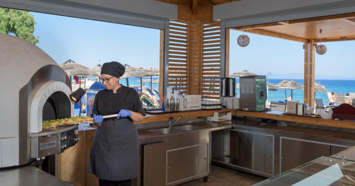 La Avra Beach Resort Hotel & Bungalows oaspeții au la dispoziție un restaurant care servește mâncare în stil bufet. Preparate din bucătăria grecească și internațională așteaptă să fie degustate în fiecare zi la micul dejun, prânz și cină. Masa poate fi servită atât în interior, cît si în aer liber, pe terasă, în funcție de vreme. Oaspeţii pot avea diverse băuturi răcoritoare sau alcoolice la bar. În cadrul proprietății există și un snack bar care servește băuturi și gustări.