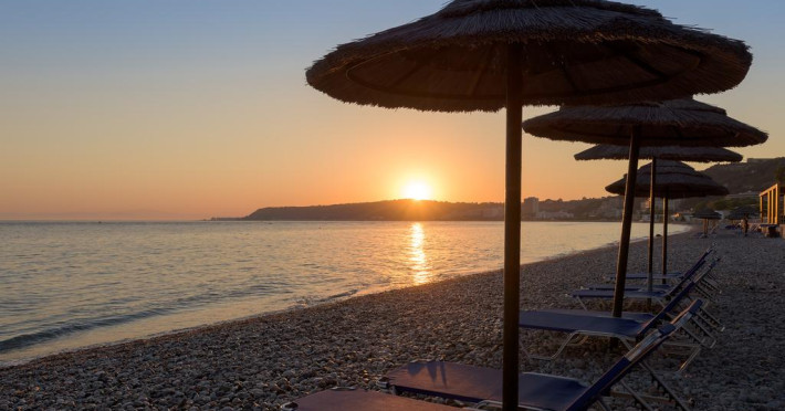 Avra Beach Resort Hotel & Bungalows are acces imediat la o plajă cu pietriș. Pe plajă există șezlonguri și umbrele de plajă.