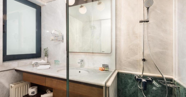 Sunt disponibile 20 camere. Camerele luminoase de la Avra City sunt dotate cu parchet, aer condiționat, Tv cu canale prin satelit și seif. În camere există baie cu cadă sau duș ce are în dotare foehn și articole de toaletă gratuite. Unele camere au balcon cu vedere la oraș sau la grădină. Fiecare cameră dispune de un aparat pentru preparare cafea sau ceai, cană-fierbător și minibar. Oaspeții pot solicita serviciul de room service pentru a servi masa sau diverse băuturi. Oaspeții au acces gratuit la serviciul Wi-fi în camere. Curățenia in cameră se face zilnic. Toate camerele spațioase de la Avra City au zonă de relaxare cu canapea, ceea ce oferă un plus de confort. Fiecare unitate de cazare are frigider. Proprietatea oferă camere pentru familie cu o suprafață mai mare și un număr mai mare de paturi față de cele standard. Se pot rezerva de asemenea camere pentru nefumători.