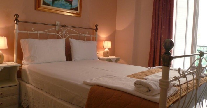 Facilitati camere: Hotelul are un total de 16 camere spatioase, luminoase, mobilate intr-un stil traditional grecesc. Au in dotare TV, frigider, baie privata cu dus, uscator de par, balcon, patut pentru copii (la cerere, in functie de tipul camerei) Camerele pot gazdui de la 1 la 4 persoane.