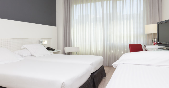 We are located near Ifema so you can access the fairgrounds quickly. You will find quality services so you can work or disconnect after a hard day. Personalized attention so that you only think about resting. . Enjoy easy access to one of Madridâ¿¿s main business areas thanks to Hotel Axor Feria. The hotel is located very close to IFEMA, offering free transfers for its most important events; 5 minutes away from Adolfo Suárez Madrid-Barajas Airport and less than 3 miles from the Wanda Metropolitano stadium, with direct access to the M-40 and A-2 motorways in both directions. There is also a taxi rank in front of the hotel. . Standard rooms are exterior, spacious and comfortable, all of them equipped with 43 TV with Chromecast and Movistar+ channels, free 100 MB symmetrical Wi-Fi connection, free safety deposit box, minibar service, kettle and welcome tray with tea and coffee and direct telephone. The bathroom includes a large shower, professional hairdryer, magnifying mirror and a towel warmer. You can also choose a Standard Room with a Queen size bed or 2 twin beds. . Family rooms up to 3-4 persons. . Free transfer to/from the airport and ifema at the main fairs of the year.Datorita dinamicitatii domeniului disponibilitatea ofertelor se modifica de la un moment la altul. De aceea ofertele sunt valabile in limita locurilor disponibile. Agentia nu este responsabila pentru eventualele neconcordante care pot aparea intre informatiile privind tarifele si alte detalii din site si informatiile primite in agentie. In aceste cazuri vor avea prioritate, intotdeauna, informatiile primite in agentie.