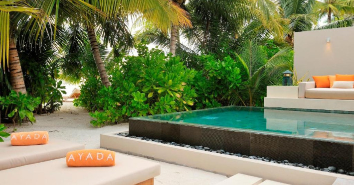 Ayada Maldives este un complex de lux situat in mijlocul unui recif de coral neatins, in zona sudică a atolului Gaafu Dhaalu din sudul insulelor Maldive. Oferă unități de cazare cu piscină de relaxare privată și WiFi gratuit. Atolul Gaafu Dhaalu se află la aproximativ 431 km spre sud de capitala Malé. Ayada Maldive este accesibil printr-un transfer intern de 55 de minute de la Aeroportul Internațional Malé la aeroportul local Kaadedhdhoo, urmat de un transfer cu barca de 25 - 55 de minute pană la complex.