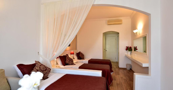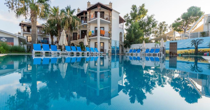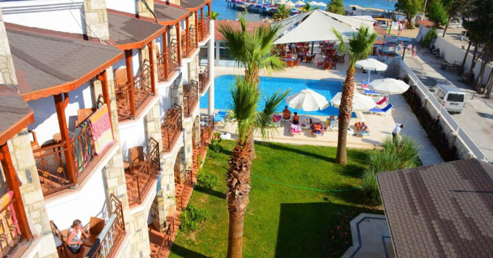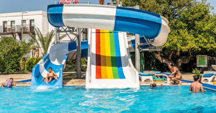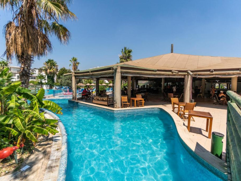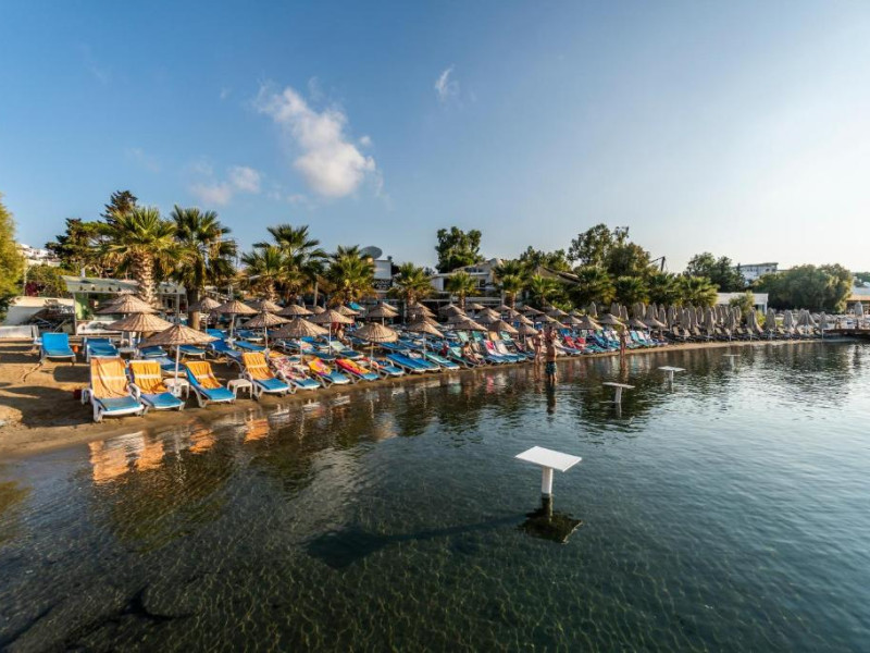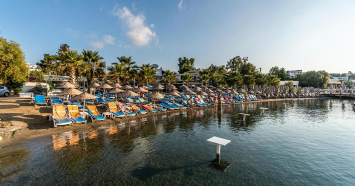 Acest hotel se află la 150 de metri de plaja Mării Egee si oferă piscină mare in aer liber, inconjurată de palmieri. Există WiFi gratuit in camere.