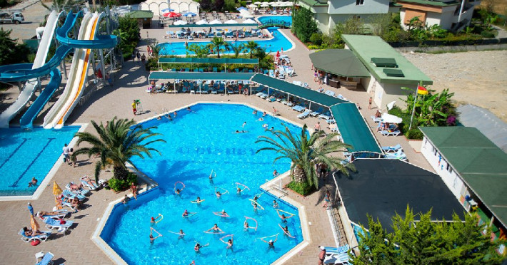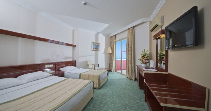 Facilitati hotel: Hotelul dispune de restaurant principal, doua restaurante a la carte, cinci baruri, inghetata, piscina cu patru tobogane, piscina pentru copii, piscina interioara, darts, basket, voley, gimnastica, aerobic, tenis de masa, internet wi-fi in zonele publice, program de animatie, sauna, baie turceasca, centru fitness, sali de conferinta.