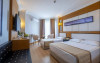 Fiecare cameră este echipată cu telefon, aer condiționat, televizor LCD, minibar, seif, baie cu duș, uscător de păr și balcon.