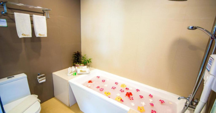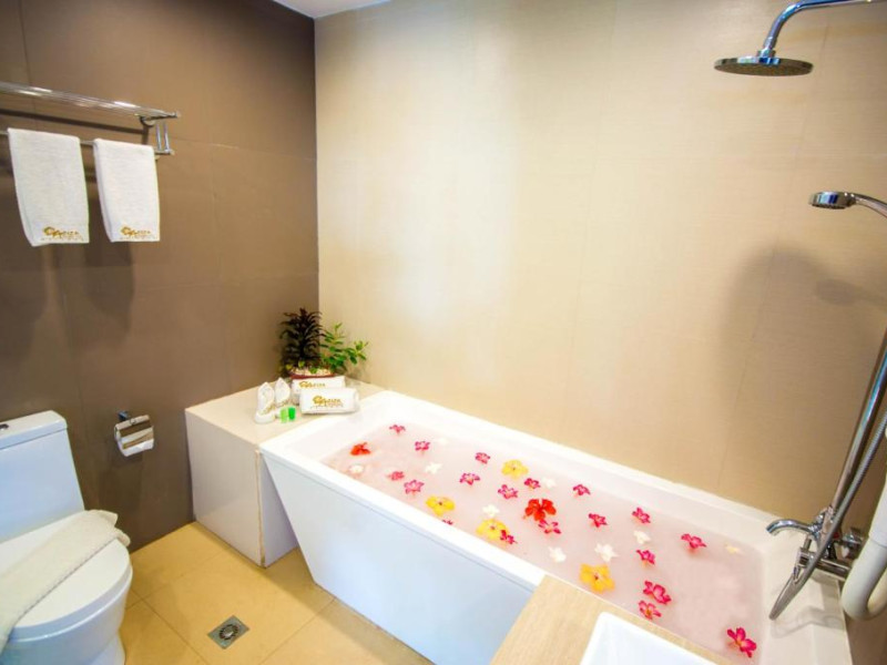 Hotelul se mandrește cu piscina infinity inconjurată de șezlonguri și umbrele, precum și cu un centru spa unde puteți incerca tratamente tradiționale asiatice. Restaurantul principal servește atat specialități locale, cat și preparate internaționale, iar barul de la piscină oferă cocktailuri răcoritoare și gustări ușoare.