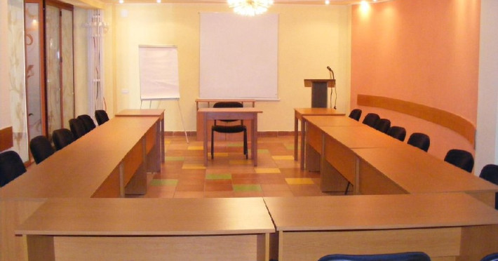 Sala de conferinta cu o capacitate de 40 de locuri fiind dotata corespunzator cu videoproiector, retroproiector, ecran proiectie, sonorizare, flipchart, internet.