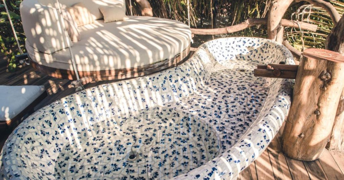 Unitătile includ o cadă mayașă unică din mozaic, in care vă puteti bucura de o baie specială cu apă din cenote, bogată in minerale și considerată apă sacră in cultura mayașă. Azulik se află la 3 km sud de situl arheologic Tulum și la 4 km de centrul din Tulum. Aeroportul International Cancun este situat la aproximativ 90 de minute de mers cu masina de Azulik.