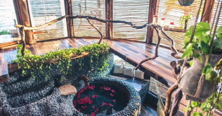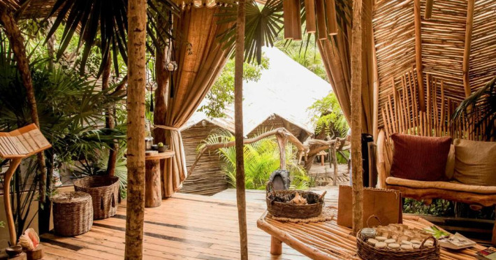 De asemenea, căsutele au terasă privată cu canapele in aer liber, zone de relaxare si vedere la jungla luxuriantă si la Marea Caraibilor. Camerele nu includ TV, telefon si electricitate, astfel incat oaspeții să petreacă un sejur relaxant in armonie totală cu natura. Azulik oferă o experiență magică. Proprietatea servește micul dejun și pranzul. De asemenea, există un bar pe plajă si un centru spa și de infrumusețare minunat. Oferă tratamente terapeutice, masaje mayașe traditionale, băi medicinale pe bază de plante și tratamente temazcal (cabană de aburi mayașă traditională).
