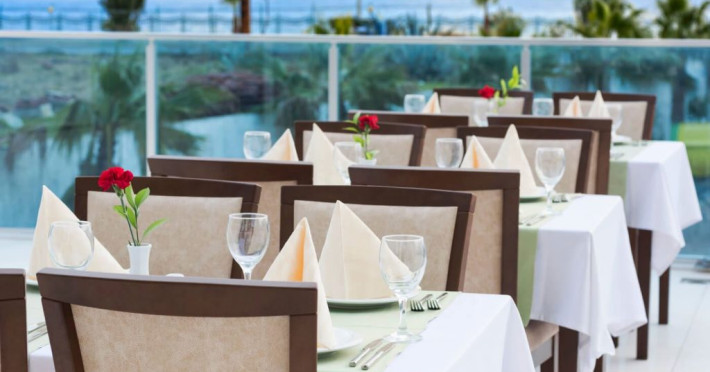 La Azur Resort Spa oaspeții au la dispoziție un restaurant care servește mâncare în stil bufet. Preparate din bucătăria internațională așteaptă să fie degustate în fiecare zi la micul dejun, prânz și cină. Masa poate fi servită atât în interior, cît si în aer liber, pe terasă, în funcție de vreme. 3 baruri, dintre care unul la piscină și unul pe plajă, sunt disponibile cu o ofertă variată de băuturi răcoritoare și alcoolice. În cadrul proprietății există și o cafenea ideală pentru o gustare rapidă.
