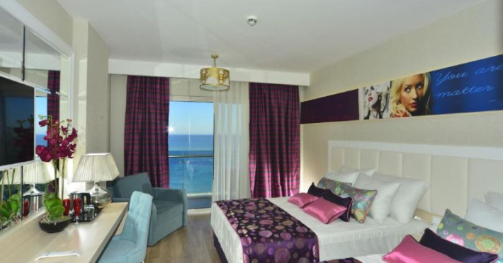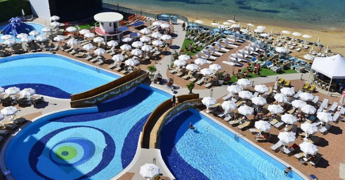 Azura Deluxe Resort & Spa este un hotel cu 5 stele, situat într-o locație privilegiată între Marea Mediterană și Munții Taur. Amplasarea sa oferă o priveliște spectaculoasă, cu apele albastre ale mării și masivele muntoase care se înalță în fundal. Înconjurat de peisaje naturale magnifice, acest complex impresionant creează o atmosferă de relaxare și confort absolut. Cu servicii impecabile și facilități de top, Azura Deluxe Resort & Spa promite o experiență de neuitat pentru oaspeții săi.Descriere