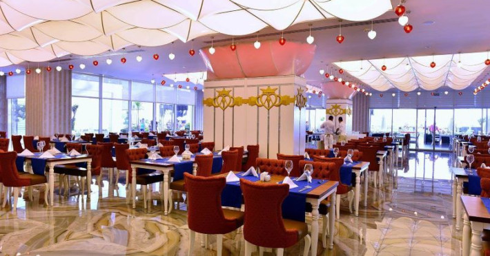 Hotelul oferă o varietate bogată de opțiuni gastronomice, inclusiv un restaurant principal, 4 restaurante a la carte (turcesc, pescaresc - cu rezervare cu o zi înainte și contra cost, italian și mexican - gratuit o dată pe sejur), 2 snack baruri și 7 baruri pentru momente de relaxare și socializare.