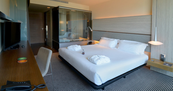 Built in 2005, this hotel comprises a total of 84 double rooms spread over 7 floors. Guests may make use of the foyer with 24-hour reception desk, a safe, a currency exchange desk, a lift and café. There is also a bar and an air-conditioned restaurant available for use. Finally a public Internet terminal and a conference room are both available for use. Those arriving by car may take advantage of the hotels car park and garage facilities as well as the room and laundry services..This city hotel is located in Barcelonas tourist centre, not far from the city centre. Shopping venues, nightclubs, bars and restaurants are to be found in the vicinity, as are links to the public transport network. The beach is also within 4 km of the hotel..The comfortable rooms come with an en suite bathroom with hairdryer, a direct dial telephone, satellite/ cable TV, a radio, an Internet connection, a minibar/ fridge, a double bed, a hire safe and central heating..Guests may select their breakfast from an ample buffet..There is a swimming pool, a gym and a sun terrace with sun loungers and parasols..American Express, Diners Club, MasterCard and VISA are accepted as methods of payment.Datorita dinamicitatii domeniului disponibilitatea ofertelor se modifica de la un moment la altul. De aceea ofertele sunt valabile in limita locurilor disponibile. Agentia nu este responsabila pentru eventualele neconcordante care pot aparea intre informatiile privind tarifele si alte detalii din site si informatiile primite in agentie. In aceste cazuri vor avea prioritate, intotdeauna, informatiile primite in agentie.