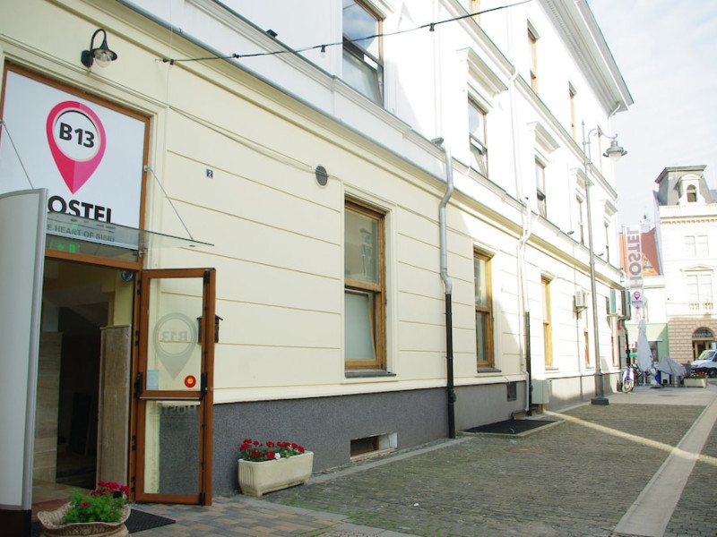 Located on the main pedestrian street in Sibiu center, 2625 feet from the train station, B13 Hostel offers free WiFi and free air conditioning. Public parking spaces are available 820 feet from the building. The rooms at the B13 Hostel come with a view of the city center. They also feature private or shared bathroom facilities. A common lounge area, fitted with a sofa and chairs, a TV and a computer, is also provided on site. Guests at the hostel can take advantage of a fully-equipped shared kitchen with a dining area and free lockers. There is a restaurant in the same building and guests enjoy discounted rates on their meals.No special conditions apply for groups. WiFi is available in all areas and is free of charge. No parking available. Pets are not allowed. Children of all ages are allowed. You havent added any cribs. You havent added any extra beds.Checkin Time: 14:00Checkin End Time: 23:00Checkout From: 09:00Checkout End Time: 11:00Hotel important information: Payment before arrival by bank transfer is required. The property will contact you after you book to provide instructions. In response to the coronavirus (COVID-19), additional safety and sanitation measures are in effect at this property.Datorita dinamicitatii domeniului disponibilitatea ofertelor se modifica de la un moment la altul. De aceea ofertele sunt valabile in limita locurilor disponibile. Agentia nu este responsabila pentru eventualele neconcordante care pot aparea intre informatiile privind tarifele si alte detalii din site si informatiile primite in agentie. In aceste cazuri vor avea prioritate, intotdeauna, informatiile primite in agentie.