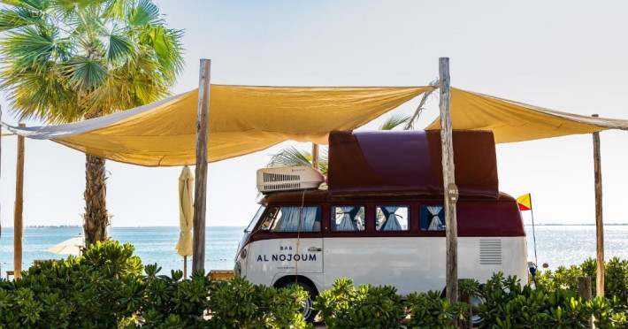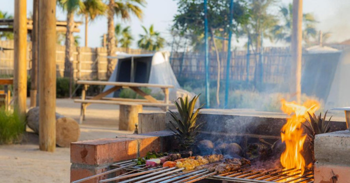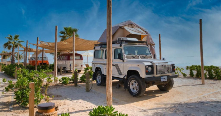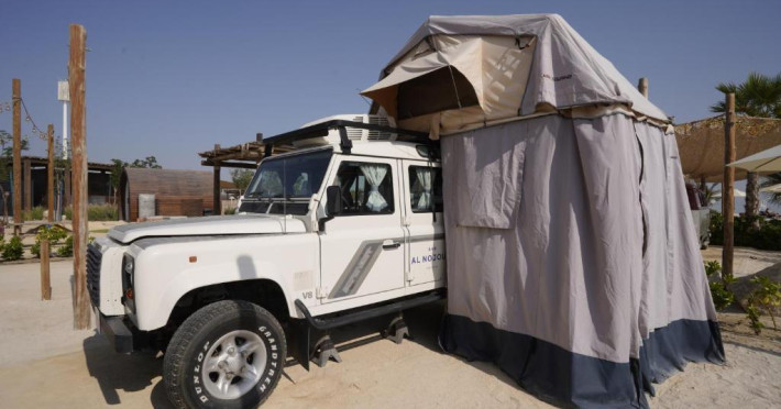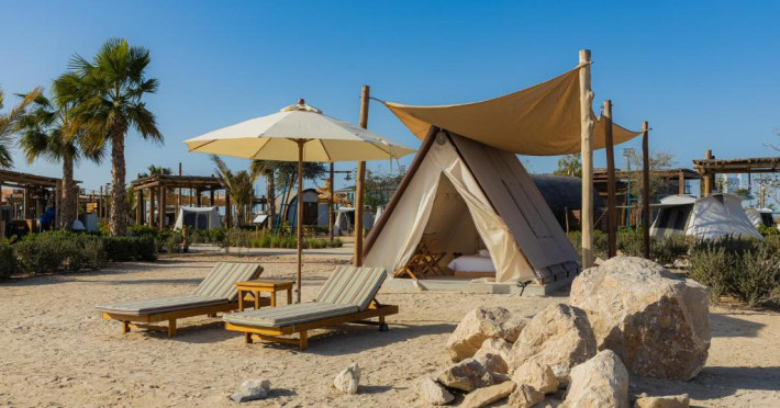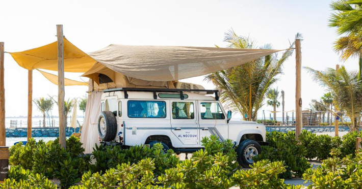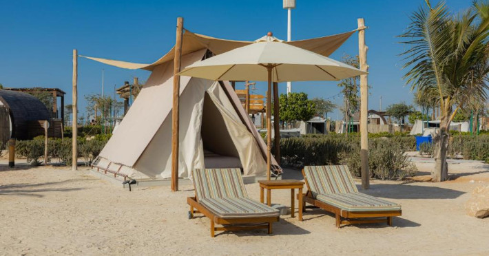 Situat la 2,8 km de plaja Al Bateen și la 8,9 km de centrul comercial Al Wahda din Abu Dhabi, Bab Al Nojoum Hudayriyat Camp oferă cazare cu zonă de relaxare. Această proprietate de pe malul mării oferă acces la un patio, tenis de masă, parcare privată gratuită și WiFi gratuit. Campingul are o zonă de plajă privată și o stație de incărcare pentru vehicule electrice.