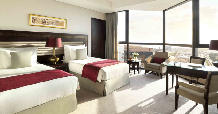 Bab Al Qasr Hotel, a five-star establishmentin Abu Dhabi, showcases iconic Arabian architecture and offers 677 luxuriousrooms and suites. Each accommodation features modern amenities such asair-conditioning, flat-screen televisions, minibars, and complimentary Wi-Fi. Guestscan enjoy the hotel's private beach, infinity pool, and the Ayana Spa, whichprovides a range of treatments. Situated on the Corniche promenade, the hoteloffers stunning views of the Arabian Gulf and the Presidential Palace, with easyaccess to attractions like the Marina Mall and the Heritage Village. Thehotel's design harmoniously blends contemporary luxury with traditional Arabianelements, creating an atmosphere of elegance and cultural richness.