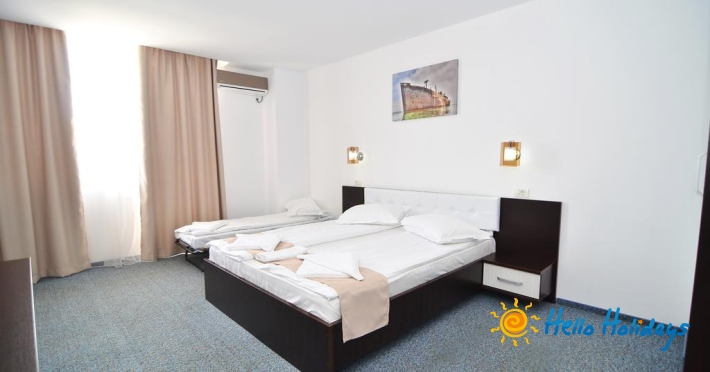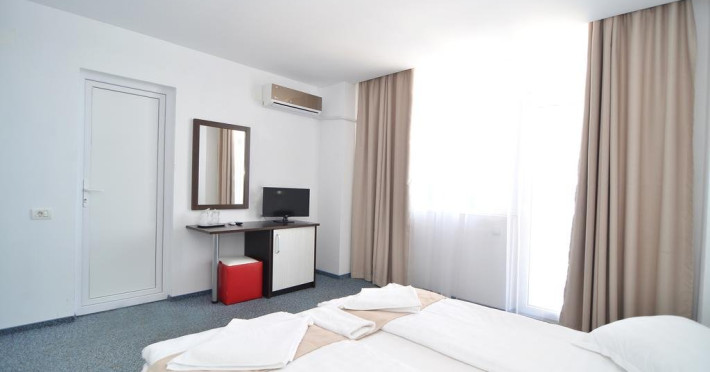Fiecare camera include baie proprie cu dus, este mochetata si are TV, aer conditionat, frigider si balcon.