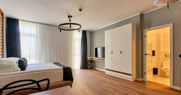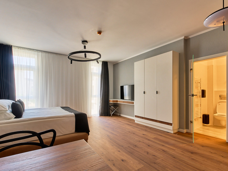 Bach Apartments 2 â Acasa, oriunde ai fi Cu aceeasi dorinta de a-ti oferi o experienta memorabila, te intampinam acum si la Bach Apartments 2, o locatie noua, moderna si primitoare, situata pe Calea Gusteritei nr. 21-23. Am creat un spatiu dedicat confortului, fie ca vii pentru relaxare, afaceri sau o escapada de weekend. Iti punem la dispozitie studio-uri elegante, garsoniere spatioase si apartamente complet utilate, intr-un cadru linistit, cu dotari gandite pentru nevoile turistului modern. Fiecare spatiu este amenajat cu atentie la detalii: mobilier nou, finisaje moderne, lumina naturala din belsug si toate facilitatile de care ai nevoie â de la internet rapid si aer conditionat, pana la acces electronic si parcare gratuita. Aici nu e doar despre cat de frumos arata camerele â ci despre cum te simti in ele. Am creat Bach Apartments 2 ca un loc unde poti respira linistit, unde te poti odihni, lucra sau bucura de o cina in tihna, exact asa cum ti-ai dori. Te asteptam cu bratele deschise in noua noastra casa. Pentru ca, oriunde ai fi, âFeels like home.âDatorita dinamicitatii domeniului disponibilitatea ofertelor se modifica de la un moment la altul. De aceea ofertele sunt valabile in limita locurilor disponibile. Agentia nu este responsabila pentru eventualele neconcordante care pot aparea intre informatiile privind tarifele si alte detalii din site si informatiile primite in agentie. In aceste cazuri vor avea prioritate, intotdeauna, informatiile primite in agentie.