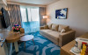 - Executive Suite - o camera cu un design nou ce poate acomoda confortabil pana la 3 copiii cu ajutorul paului de 1.80 m dar si canapelei extensibile ce poate acomoda 2 copii. Lenjeria din 100% bumbac, salteaua de calitate si draperiile opace asigura relaxarea si confortul de care are nevoie intreaga familie. Pentru a ne asigura ca fiecare are spatiul necesar, aceasta camera a fost dotata cu 2 bai.
