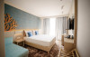 - Koralio - o camera confortabila in care spatiul si designeul au fost prioritare. Patul confortabil cu salteaua de dimensiuni de 1.80 m, culorile inspirate de maul marii si calitatea materialelor folosite ofera linistea necesara pentru relaxare. Lenjeriile din 100% bumbac, precum si celelalte materiale folosite asigura confortul necesar vacantei. Dotari camera: wi-fi, aer conditionat, tv cu ecran plat, telefon, minibar, seif, apa plata, bomboane ciocolata, papuci, articole de baie (casca baie, sapun, gel de dus, sampon, lotiune de corp), uscator de par, baie cu cabina de dus, oglinda barbierit/machiaj, birou, 2 fotolii, balcon