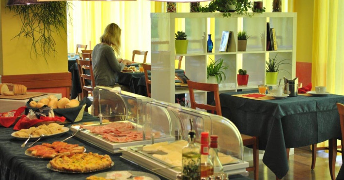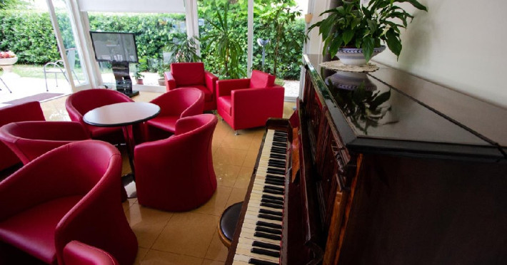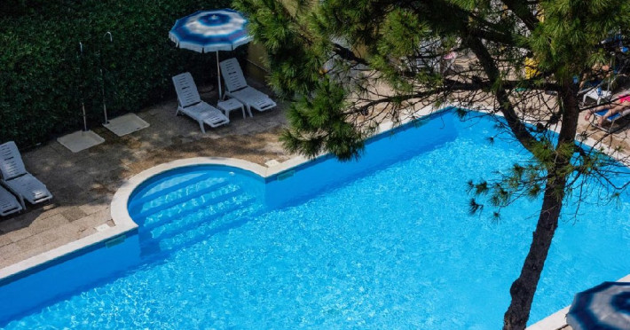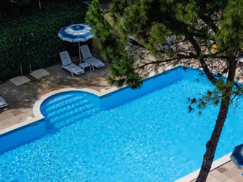 Facilitati HOTEL BAHAMA: receptie 24h, restaurant, lounge, veranda, gradina, wihi, AC, serviciu inchiriere biciclete (contra cost), AC, parcare (8 euro/zi, la cerere), piscina pentru adulti si copii.