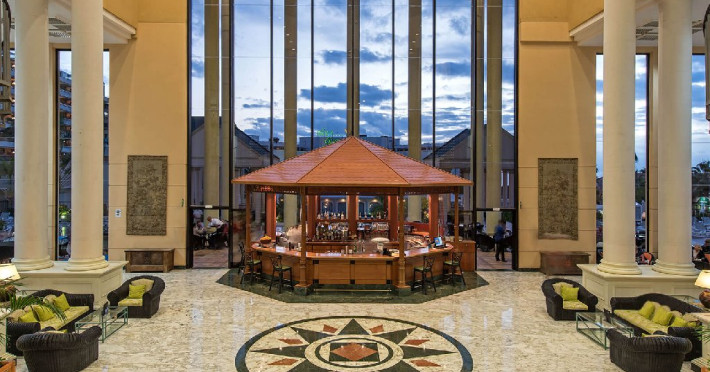 Facilitati hotel: 3 piscine exterioare ( una deschisa pe timp de iarna), sauna, masaj, 3 baruri exterioare: Coco Loco, Vitaminas si Piano Bar, 2 baruri interioare: Honolulu si Piano bar, un restaurant interior, disco bar, camera de jocuri, internet, magazin, teren de tenis, squash, biliard, spalatorie.