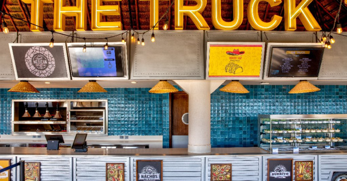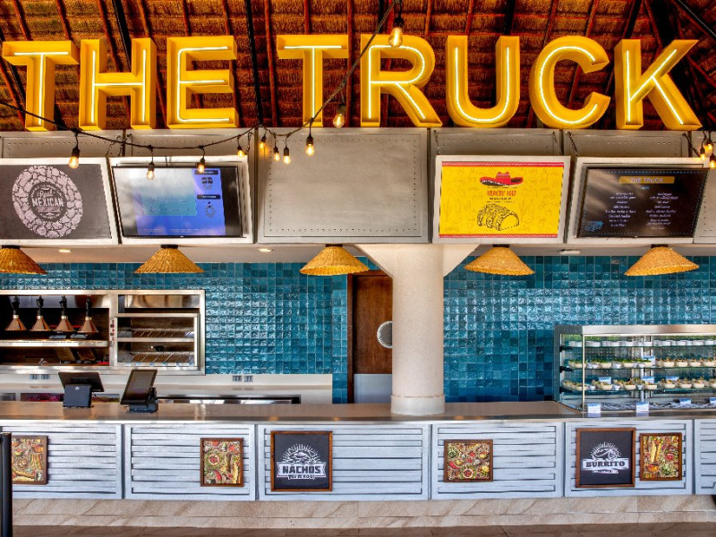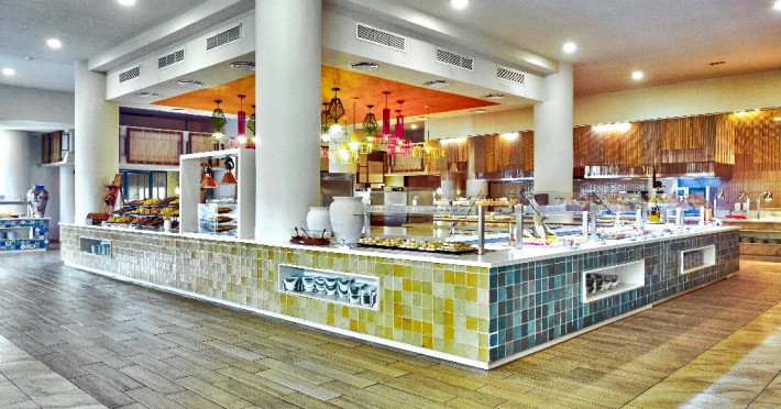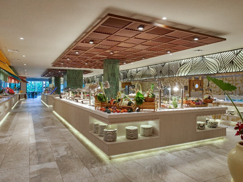Restaurante: restaurant principal Yucatan, 3 restaurante a la carte (mexican, indian, steakhouse - deschise seara), restaurant cu burgeri, Food Truck cu gustari (deschis 24h)