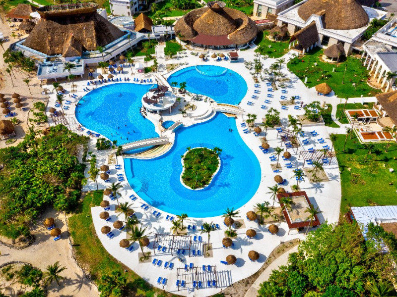 3 piscine cu zona separata pentru copii, zone jacuzzi, terase cu sezlonguri si umbrele