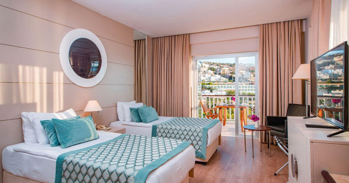 Localizare Hotelul Baia Bodrum se afla localizat la 19 km de centrul orasului Bodrum si la 48 km de aeroport. Hotelul dispune de: de 220 camere, 16 suite, 2 senior suite, 1 king suite. Facilitati hotel Hotelul are la dispozitia turistilor sai restaurant, snack bar, beach bar, vitamin bar, 4 sali de conferinta complet echipate, amfiteatru, cinema, piscina pentru adulti si cu sectiune pentru copii, miniclub, discoteca acoperita, aqua park, sala de fitness, baie turceasca, sauna, baie de aburi, spa, masaj, jet ski, terenuri de joaca. Facilitati camere Camerele hotelului sunt dotate cu baie cu dus sau cada, uscator de par, televizor prin satelit, telefon, minibar, seif, aer conditionat centralizat.Info