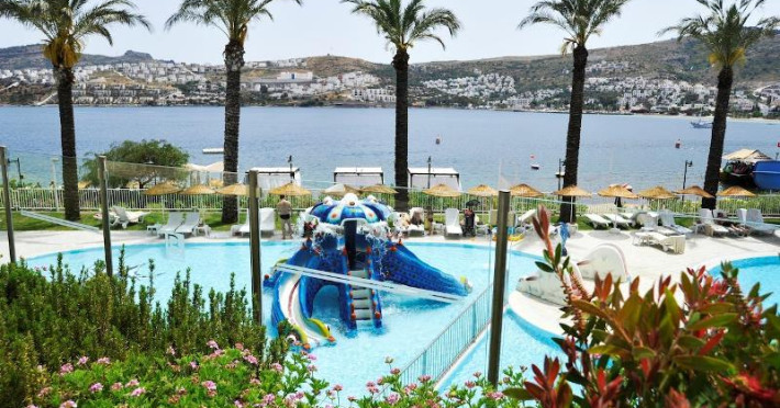 Oferind vedere la golful Gündoğan, acest complex ultra all-inclusive are plajă privată și camere de design cu vedere la Marea Egee. Hotelul include parc acvatic cu diverse piscine şi centru de wellness.Localizare