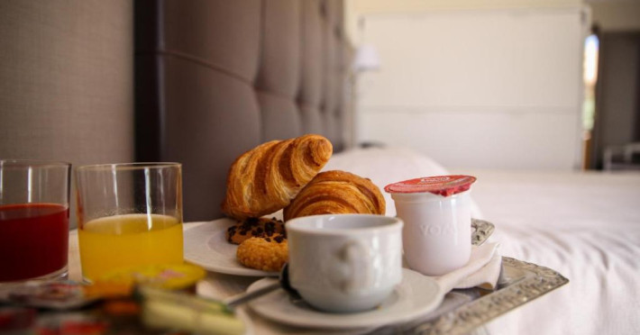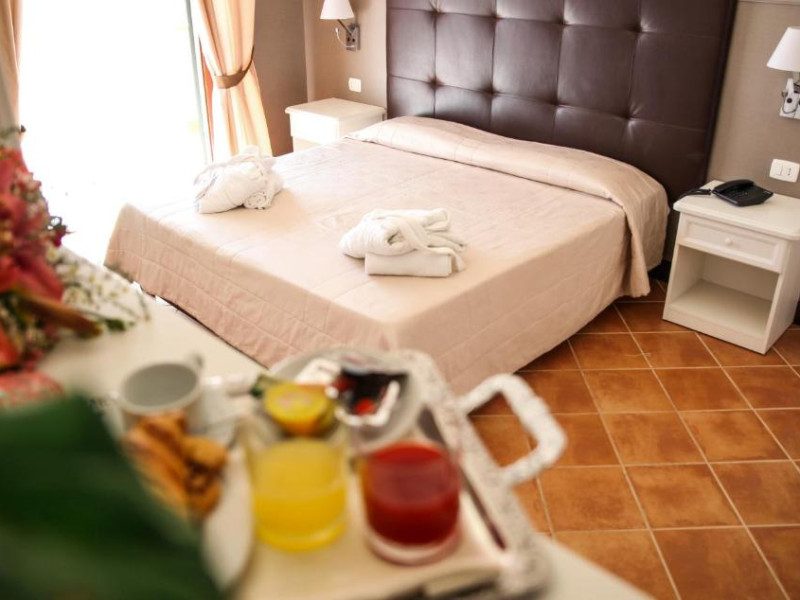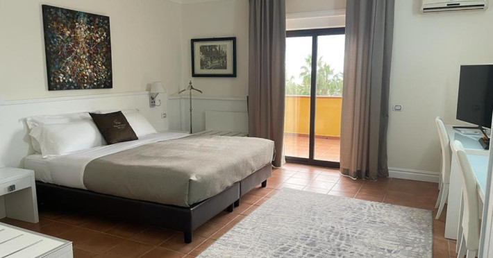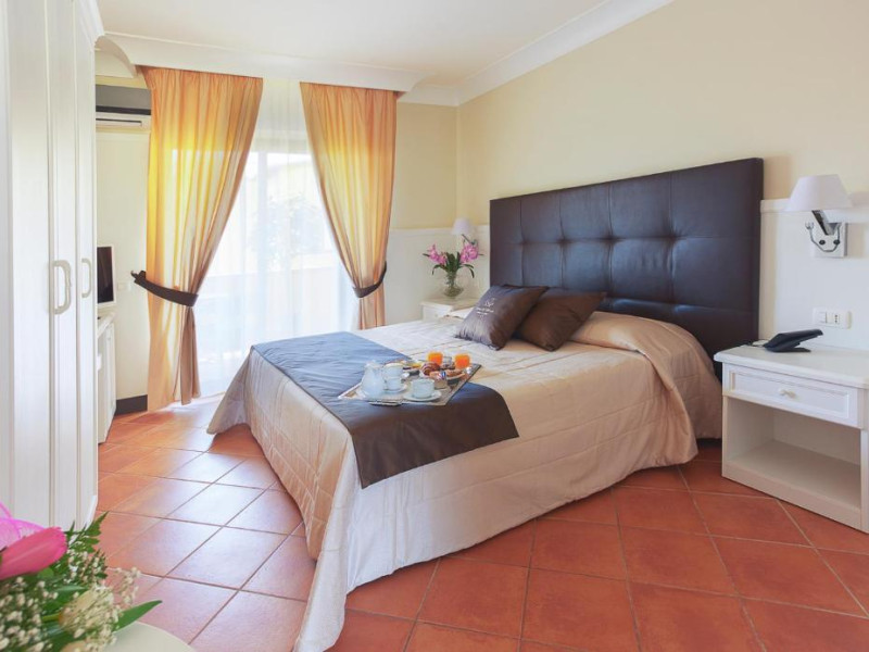 Camerele sunt dotate cu aer condiționat și au balcon privat, seif și TV cu ecran plat. Stilul este mediteranean, cu podele cu gresie și baie din marmură cu duș. WiFi gratuit este disponibil in zonele publice.
