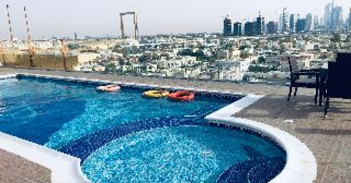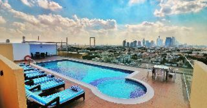 Baity Hotel Apartments is centrally located in Bur Dubai, within a 5-minute drive from the World Trade Centre and a few minutes walk from Burjuman Shopping Mall and the Dubai Metro providing easy access to the city’s major attractions. Accommodations are equipped with air-conditioning, satellite LCD TV in the living room, tea and coffee making facilities, in-room safe, WiFi access, iron and ironing board, dining area, fully equipped kitchen with branded appliances, en suite bathroom and some rooms include a balcony. The in-house restaurant serves authentic Indian, Arabic and international dishes. Other facilities and services include a rooftop pool with views over Burj Khalifa and Dubai skyline, sauna, steam baths, fitness room, free unlimited WIFI access throughout the hotel, meeting rooms, business support services and free private parking on 2 levels. The Mall of the Emirates, Jumeirah Beach, Dubai Mall, Wild Wadi Water Park and Dubai Museum are some of the attractions in the area.