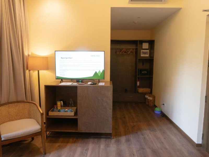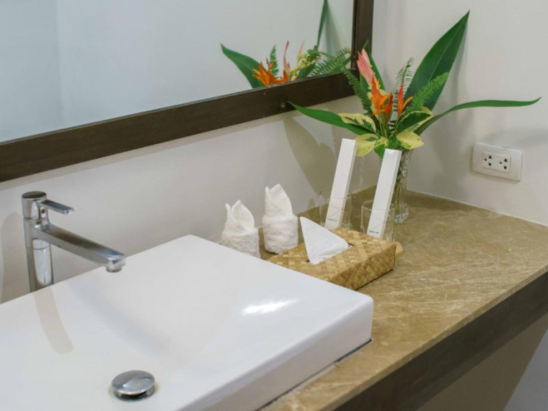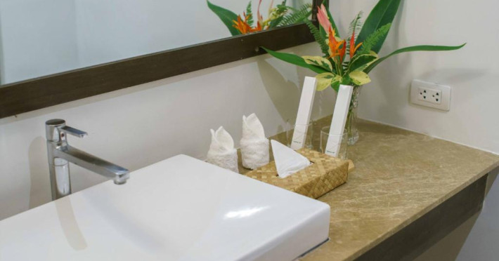 Camerele spațioase sunt decorate in stil local și sunt dotate cu aer condiționat, WiFi gratuit și terasă privată cu vedere spre grădina tropicală. Restaurantul hotelului servește preparate din bucătăria filipineză și internațională, cu accent pe fructe de mare proaspete.