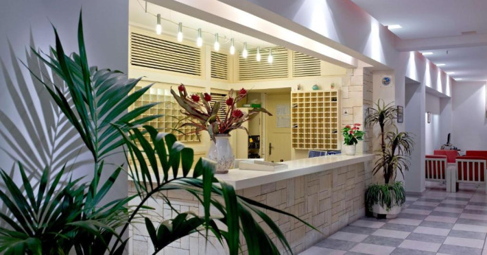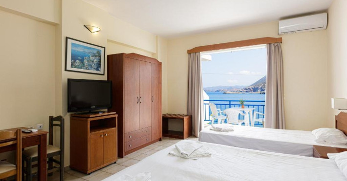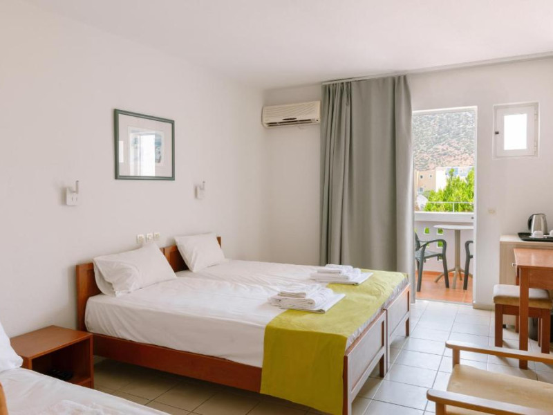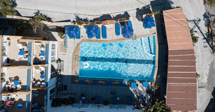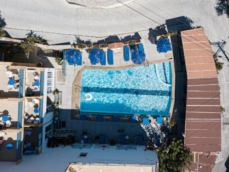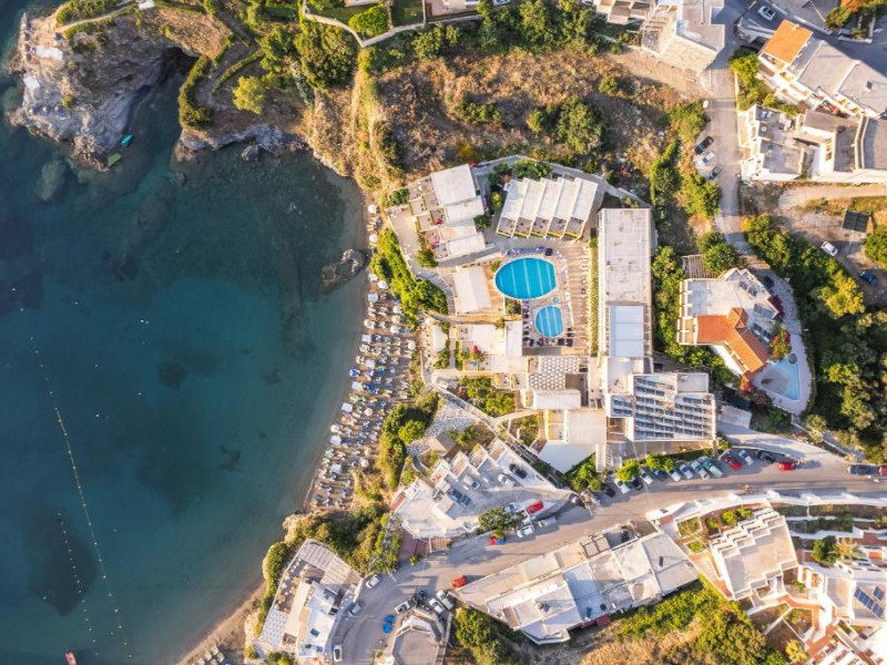 Este format din 5 clădiri, 2 dintre ele fiind situate in fața plajei, iar celelalte sunt chiar deasupra, cu trepte separate de drumul satului. Acesta oferă o varietate de unități de cazare confortabile pentru a se potrivi nevoilor oaspeților, la doar 100 m de populara plajă cu nisip.