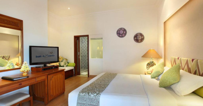 Camerele complexului Bali Mandira sunt dotate cu TV prin cablu si facilităti pentru prepararea de ceai/cafea. Fiecare cameră include o cutie de valori si un minibar. Baia alăturată are cadă si dus.