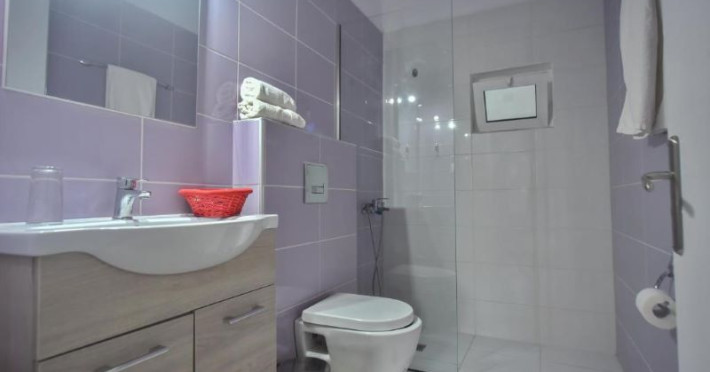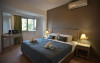 Fiecare cameră are baie proprie cu duș, WC și uscător de păr, precum și balcon sau terasă cu vedere la mare și la grădină.