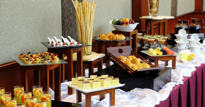 Braseria hotelului servește preparate asiatice și occidentale, cu fructe de mare și specialități teppanyaki. Barul oferă băuturi.
