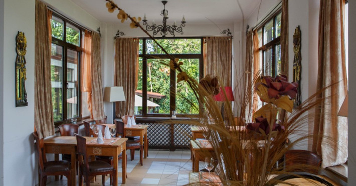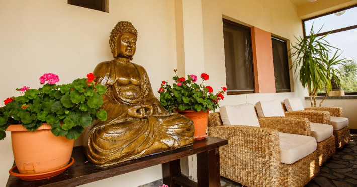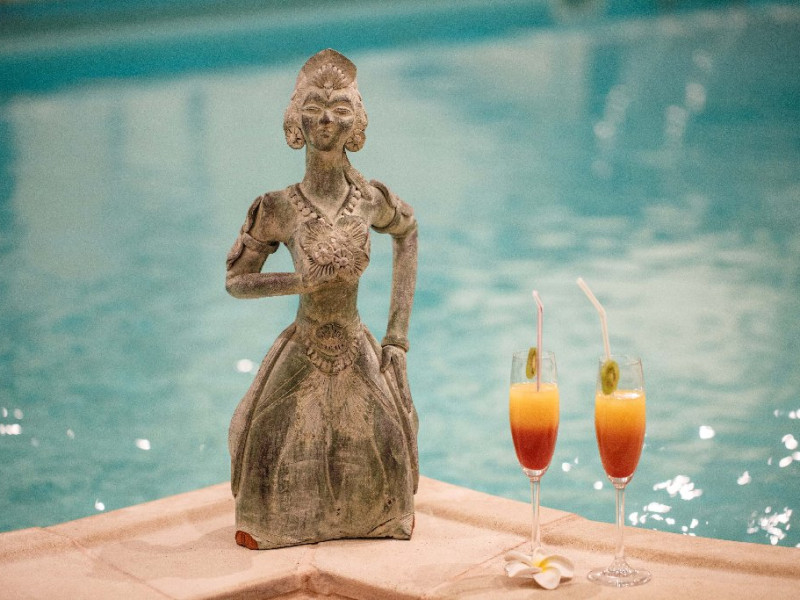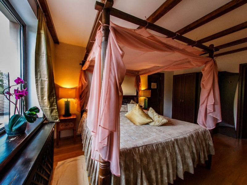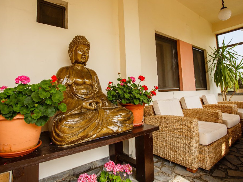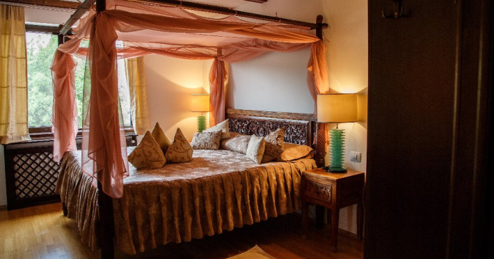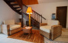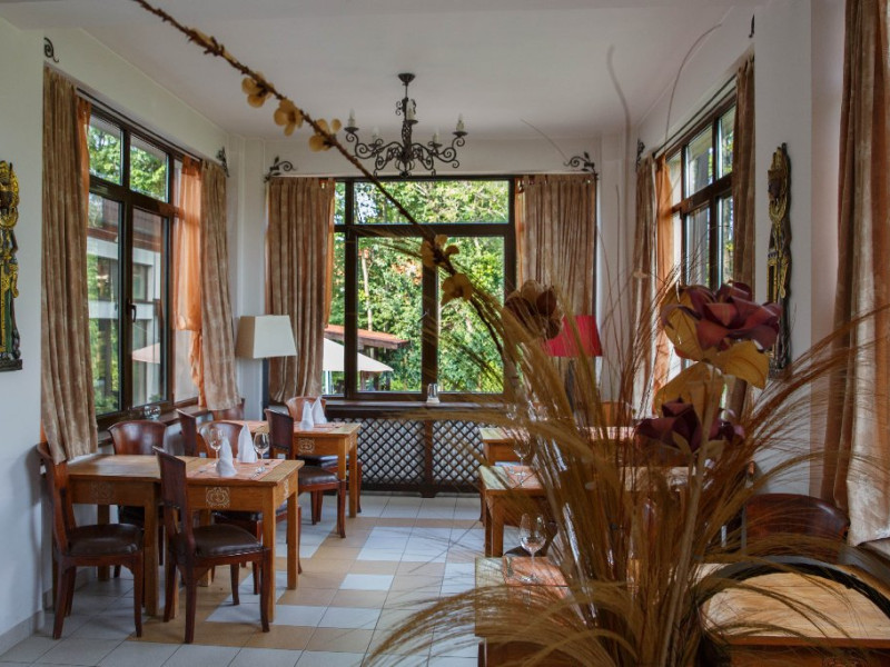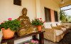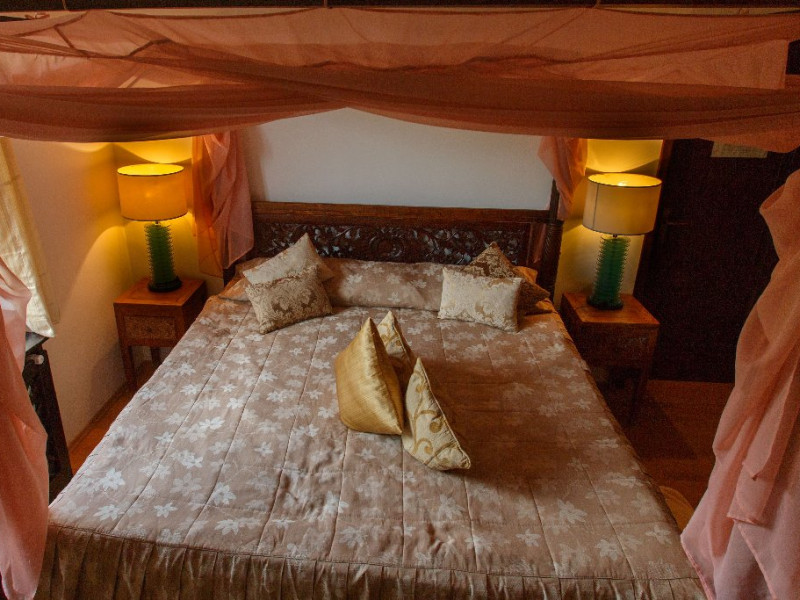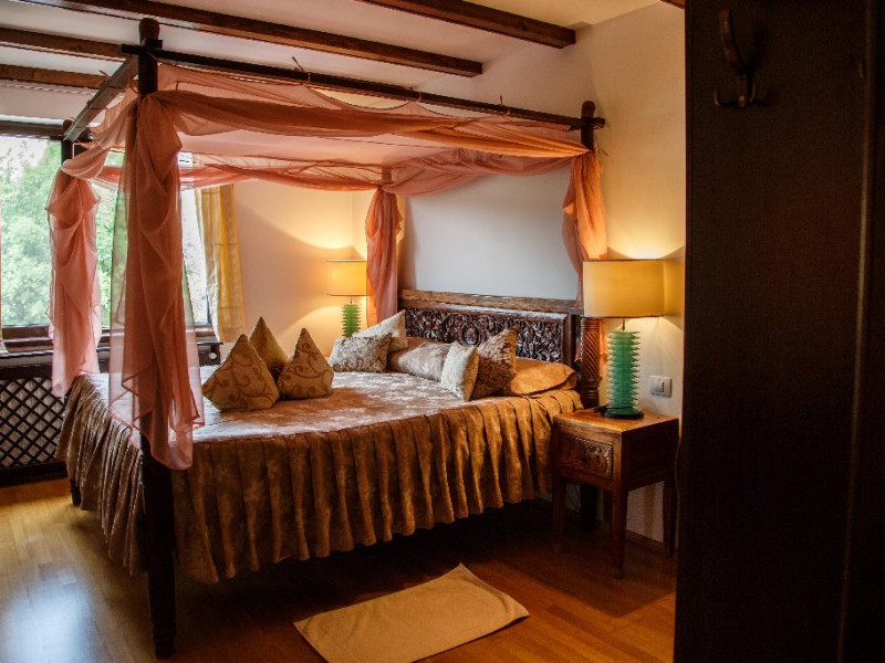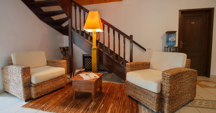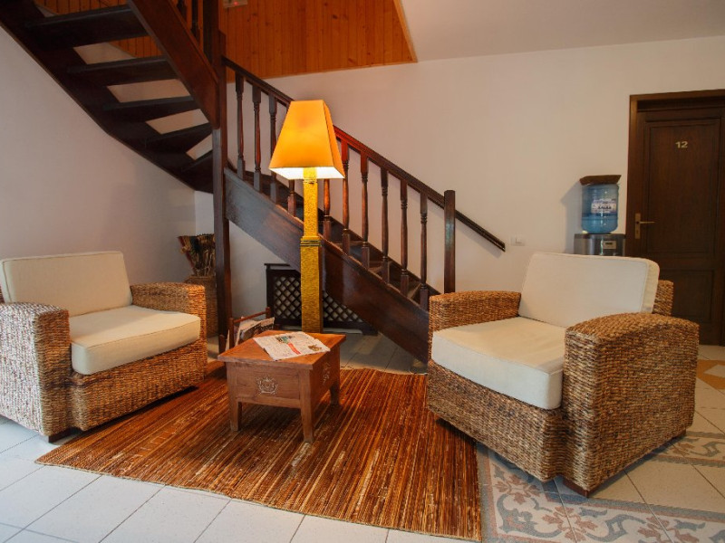 Camerele decorate cu elemente in stil Bali si dotate cu aer conditionat, TV, frigider si seif, canapea si baie privaa cu uscator de par si papuci de casa.