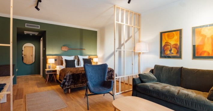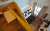 APARTAMENT CU 1 DORMITOR - VILLA PANORAMA - Situat intr-un corp separat la 150m de cladirea hotelului, acest tip de apartament are o suprafata de 39 mp si poate gazdui maxim 3 persoane. Acesta dispune de un dormitor cu pat matrimonial, un living cu bucatarie si baie proprie.