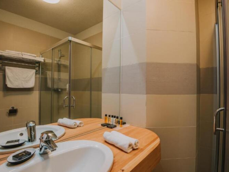You can stop by the bar. Its time to have a nice meal! Stop by the restaurant. Free Wi-Fi on the territory will help you to stay on-line. If you travel by car, you can park in a parking zone.The following services are also available for the guests: a massage room, a sauna, a steam bath and a spa center. Guests who love doing sports will be able to enjoy a fitness center. Get ready for a fun and exciting vacation! Heres what you will find on the premises: a ping-pong area and a barbeque area. Here, you can treat yourself with water procedures as there will be a pool.For participants of business meetings, there is a conference hall and meeting and presentation facilities. To book an excursion, consult the tour assistance desk of the resort. For the free movement around the city, the resort offers a transfer for you. At the guests disposal, theres also a laundry, dry cleaning, an ATM, ironing, press and a safe-deposit box.The staff of the resort will be happy to talk to you in English.You can stop by the bar. Its time to have a nice meal! Stop by the restaurant. Free Wi-Fi on the territory will help you to stay on-line. If you travel by car, you can park in a parking zone.The following services are also available for the guests: a massage room, a sauna, a steam bath and a spa center. Guests who love doing sports will be able to enjoy a fitness center. Get ready for a fun and exciting vacation! Heres what you will find on the premises: a ping-pong area and a barbeque area. Here, you can treat yourself with water procedures as there will be a pool.For participants of business meetings, there is a conference hall and meeting and presentation facilities. To book an excursion, consult the tour assistance desk of the resort. For the free movement around the city, the resort offers a transfer for you. At the guests disposal, theres also a laundry, dry cleaning, an ATM, ironing, press and a safe-deposit box.The staff of the resort will be happy to talk to you in English.In the room, there is a shower, a TV, a mini-bar, a bathrobe and slippers. The room equipment depends on its category.In the room, there is a shower, a TV, a mini-bar, a bathrobe and slippers. The room equipment depends on its category.Please note that the Special Offer from 3-7 May 2013 for Double Rooms, Twin Rooms and Junior Suites includes:- 4 May: Live music and sports activities (table tennis, billiards, cycling)- 5 May: Easter presents for children, live music, free access to the Adventure Park- 6 May: special party with live music, guided hikes to Pestera Sulfuroasa and Izvoarele TamaduitoareDatorita dinamicitatii domeniului disponibilitatea ofertelor se modifica de la un moment la altul. De aceea ofertele sunt valabile in limita locurilor disponibile. Agentia nu este responsabila pentru eventualele neconcordante care pot aparea intre informatiile privind tarifele si alte detalii din site si informatiile primite in agentie. In aceste cazuri vor avea prioritate, intotdeauna, informatiile primite in agentie.