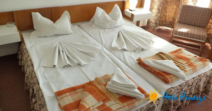 Camerele duble au o suprafata de 16 mp, dispun de pat matrimonial ( 160x200 cm) sau doua paturi twin ( 90x200 cm) ce se pot uni sau desparti la cerere, baie cu cada, TV, frigider. Toate camerele au vedere spre mare. Poate acomoda 2 adulti sau 2 adulti si maxim 2 copii.
