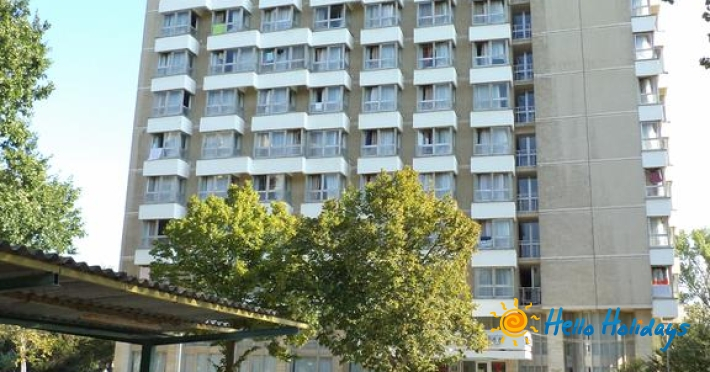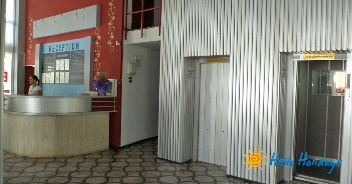 Acesta este dispus pe 14 etaje, deservit de lift si are o capacitate de 195 camere duble, 13 camere triple si 13 apartamente.