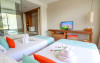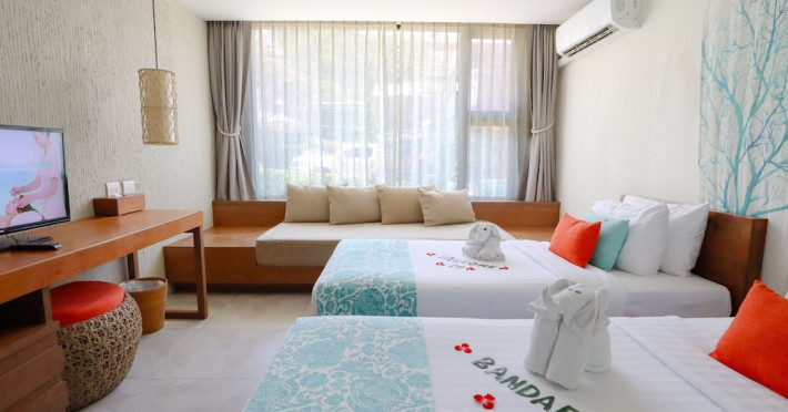 About 200 m from a beach lies the hotel Bandara Beach Resort, Phuket. The nearest restaurants and bars can be found within 100 m. There is a shuttle between the hotel and the airport (for a fee). On the beach are cushions, sun umbrellas and beach towels available. The GPS-verified hotel has a 24h reception, a lobby, Wi-Fi, internet access as well as parking spaces (limited). In the outdoor area of the property you will find a garden as well as a pool (open all year), where sun loungers, sun umbrellas and pool towels are available for free. Furthermore, outside you can find a terrace. You can store your luggage in the hotel's storage room. There is also a laundry and ironing service. Ironing equipment can also be rented at the hotel for a fee. For your comfort the hotel page will ensure you are looked after. Guests at the accommodation can get a wake-up call from the hotel personnel. The energy supply is 220 Volts. American Express, Euro/Master Card and Visa are accepted as means of payment. Catering Breakfast is offered from the buffet. Lunch and dinner are served as a set meal. The drinks menu of the hotel includes water, coffee and tea and beer. Distances