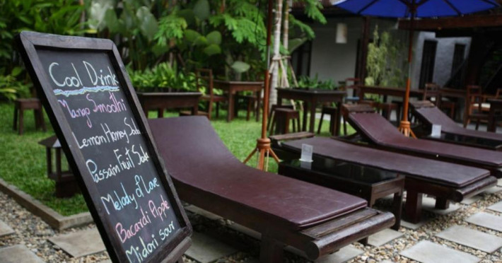 Barul și bistroul de la piscină oferă cocktailuri și mese exotice. Este disponibil și room service.
