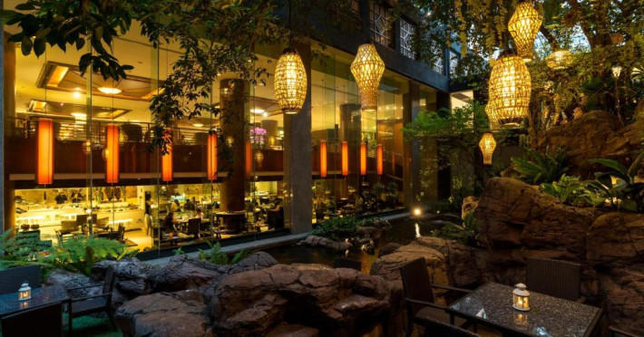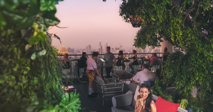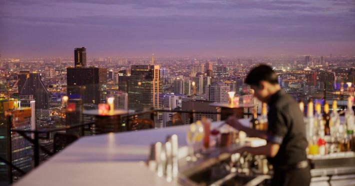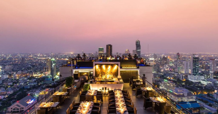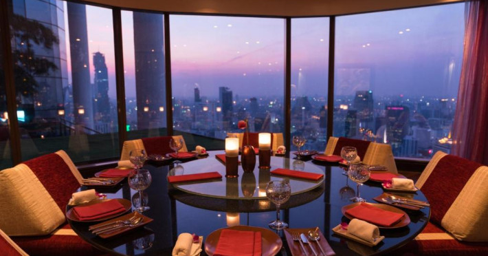 Barul Vertigo and Moon, cu vedere panoramică, servește o varietate de preparate occidentale. De asemenea, oaspeții pot savura specialități thailandeze și chinezești. Banyan Tree Bangkok organizează o croazieră cu cină, pe raul Chaophraya.