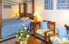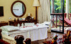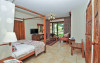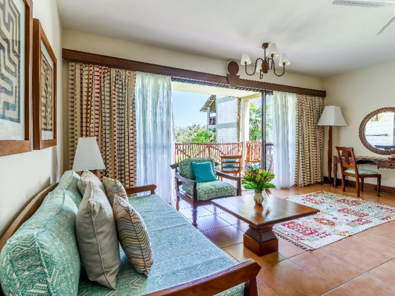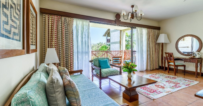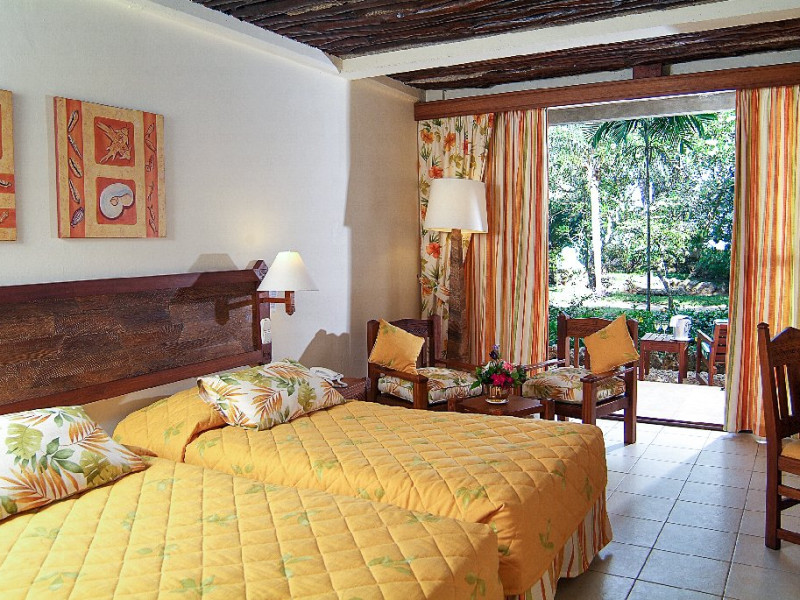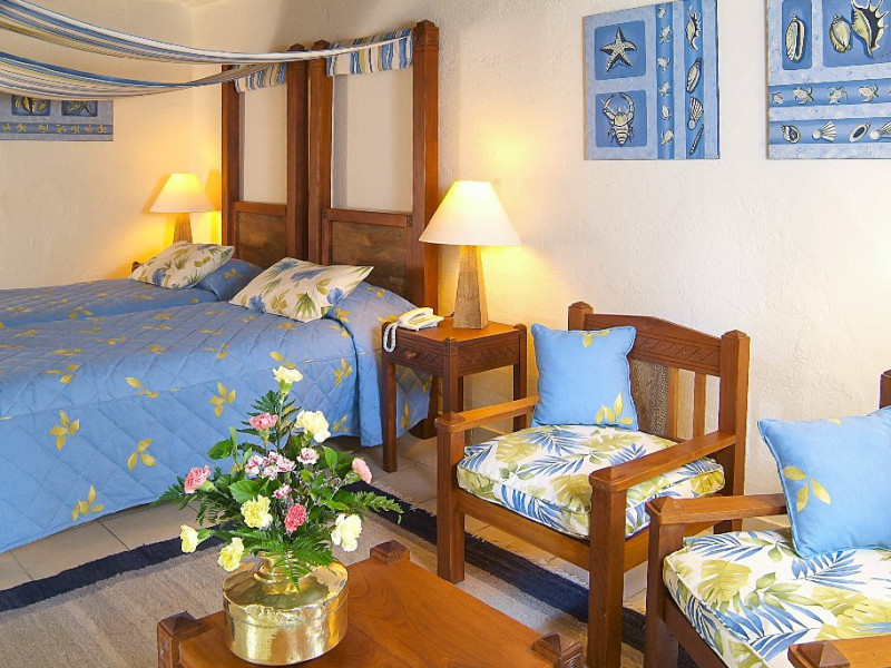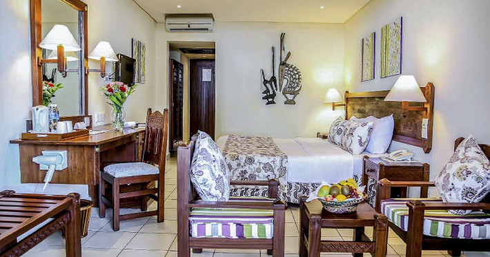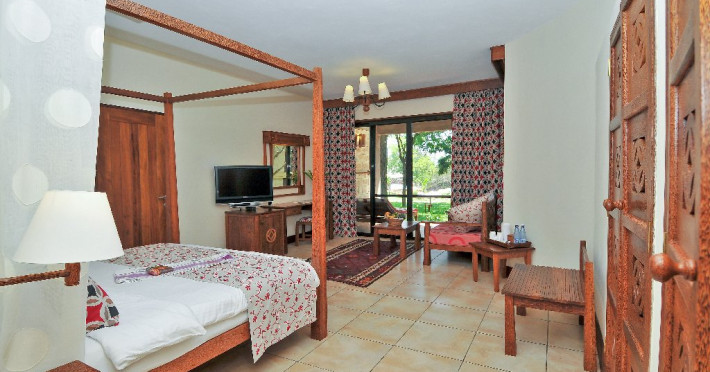 Dotari camere: Cele 87 camere din cladirea principala au vedere la mare, iar cele 68 bungalow-uri au vedere la gradina. Camerele sunt confortabile si mobilate elegant si au capacitate maxima 2 adulti + 1 copil. Toate sunt dotate cu aer conditionat, wi-fi, uscator de par, seif, minifrigider, facilitati preparat cafea/ceai, TV satelit, plase de tantari si balcon sau terasa.